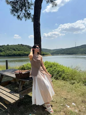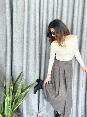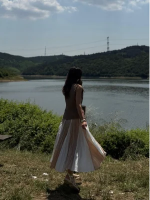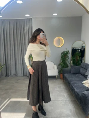 İki Renk Buruşuk Görünümlü Etek