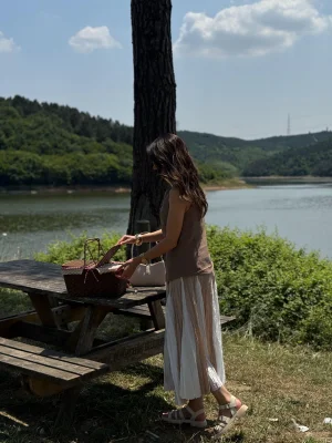 Tül Detaylı Şık Maxi Etek – Beyaz