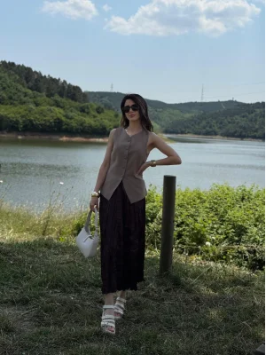 Kahverengi Krep Saten Etek