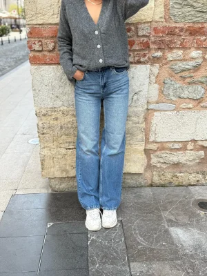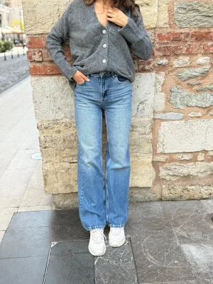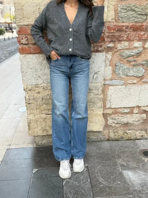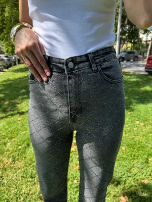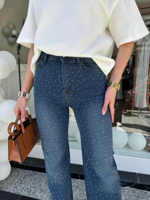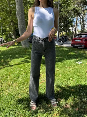 Yüksek Bel Likralı Palazzo Kadın Jean Kot Pantolon Siyah TAŞLI