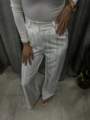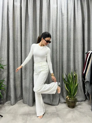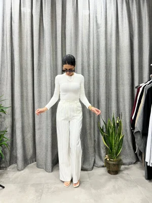 PREMİUM YÜKSEK BEL TAŞLI BEYAZ PALAZZO