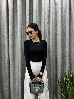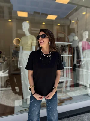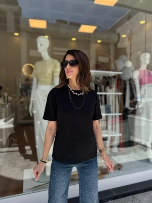 Yüksek Yaka Basic Tişört siyah