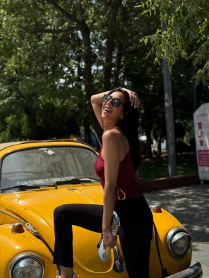 Yüksek Yaka Basic Tişört Sarı