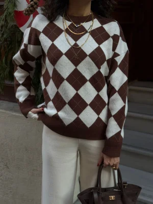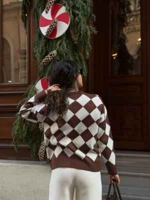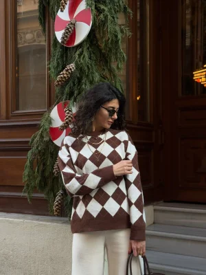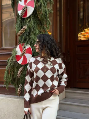 Kahve Baklava Desenli bisiklet Yaka Kazak
