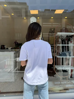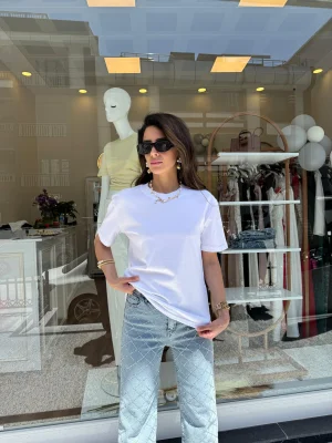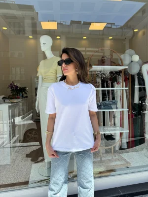 Yüksek Yaka Basic Tişört Beyaz
